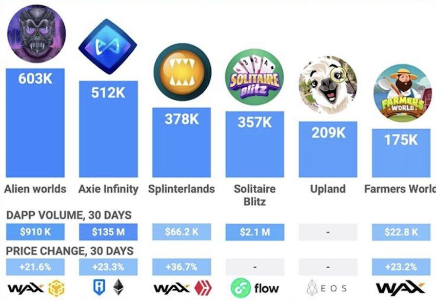 Согласно данным DappRadar, в июле NFT-проект Alien Worlds занял первое место среди блокчейн-игр. Ежедневно он регистрирует порядка 230 тысяч посетителей. Общее количество уникальных адресов на платформе превышало в июле отметку 600 тысяч. С таким уровнем популярности игра бросает серьезный вызов основным конкурентам.