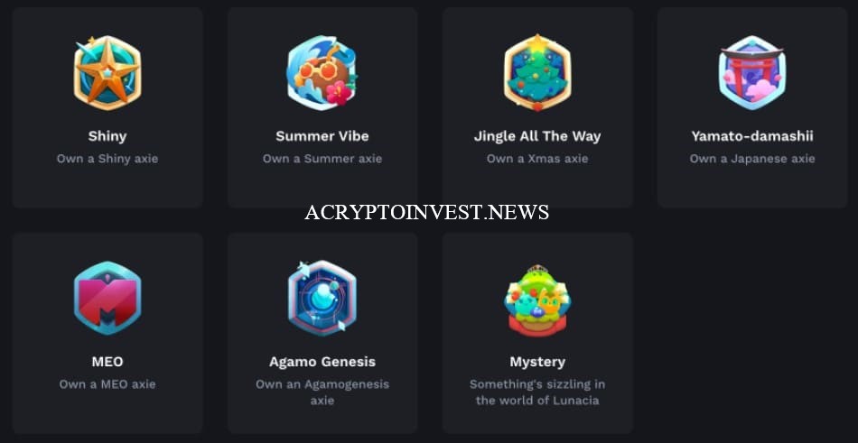 Acryptoinvest.news: Axie Infinity расширила список наград коллекционеров, представив шесть новых значков на своей платформе Lunalog. Эти дополнения призваны вознаграждать наиболее выдающихся и преданных своему делу игроков.