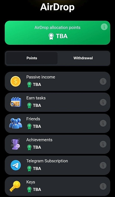 Согласно новому разделу «Airdrop» Hamster Kombat, обновлённому 8 августа, все внутриигровые действия будут учитываться для накопления дополнительных очков airdrop. Речь идёт о шести различных разделах для накопления токенов, включая пассивный доход игрока и выполнение заданий, достижения, подписка и ключи Telegram, а также реферальные ссылки для друзей.