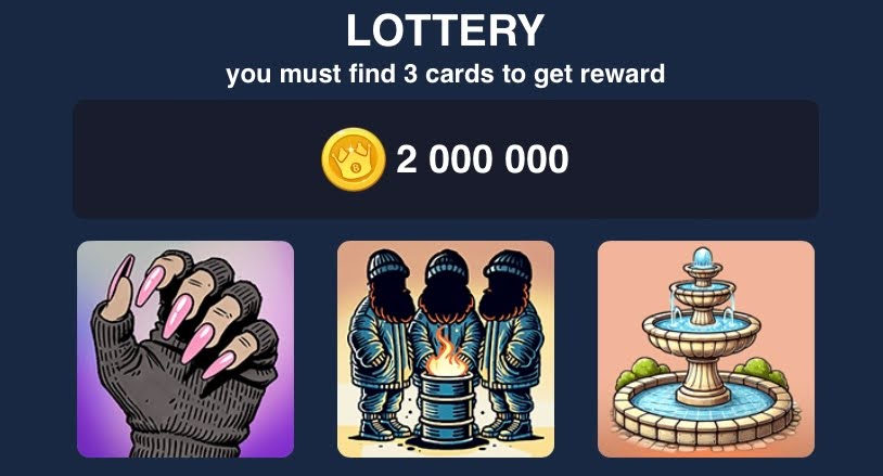 Заработайте более 2 миллионов монет за разгадку увлекательных головоломок с готовыми решениями из нашего сегодняшнего обзора. Для доступа к дейлику комбо Bums перейдите во вкладку «Lottery» и соберите верную комбинацию из карточек, также дополнительно укажите актуальный код из видео в разделе «Tasks».