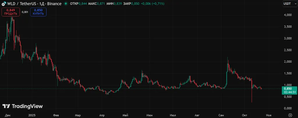 Большинство активов крипторынка, испытывает волатильность, цена WLD — не исключение. После стремительного подъема на новостях о сделке с Eightco она опустилась до отметки ~$0,85.