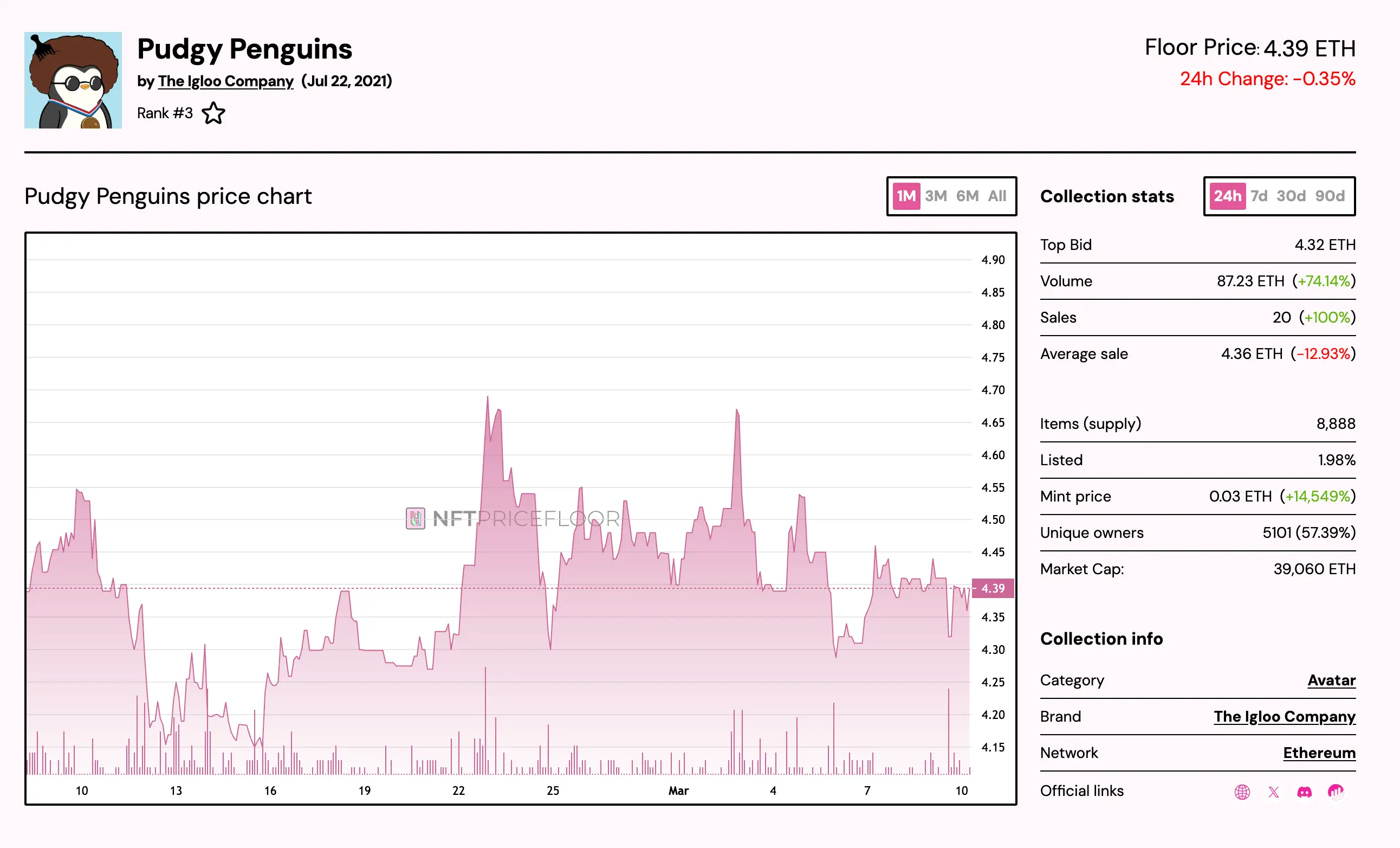 График минимальной цены $NFT из коллекции Pudgy Penguins.