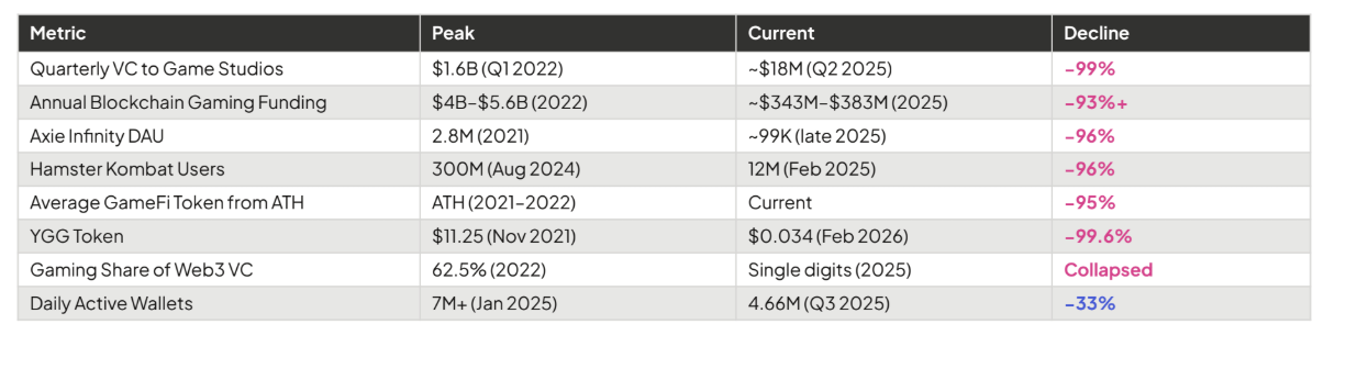 В качестве примера можно привести количество ежедневно активных пользователей (DAU) в одном из самых популярных проектов сектора, Axie Infinity, которое сократилось с 2,8 млн до 99 000 по состоянию на конец 2025 года.