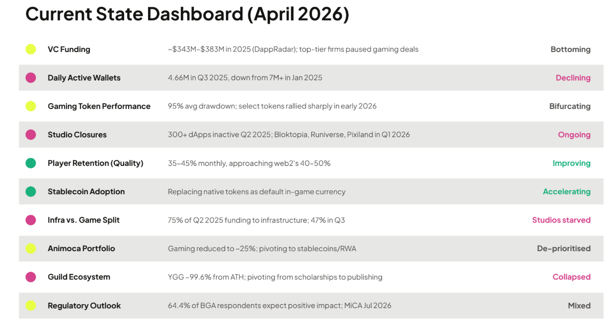 - Согласно ему, 93% проектов фактически мертвы, уровень инвестиций сократился, а средняя просадка игровых токенов составляет 95%.