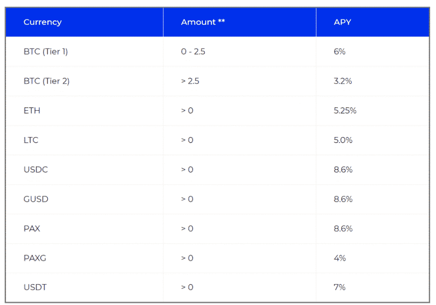 Доходность по некоторым депозитам в крипте от BlockFi (до проблем с SEC)