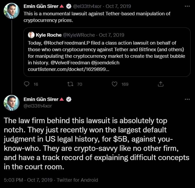 При этом ранее глава Ava Labs назвал юридическую фирму «первоклассной» после того, как Roche Freedman подала коллективный иск против Tether и Bitfinex.