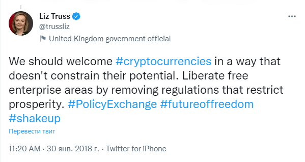 Лиз Трасс, которая станет следующим премьер-министром Великобритании и сменит на этом посту Бориса Джонсона, достаточно лояльно относится к криптовалютам.