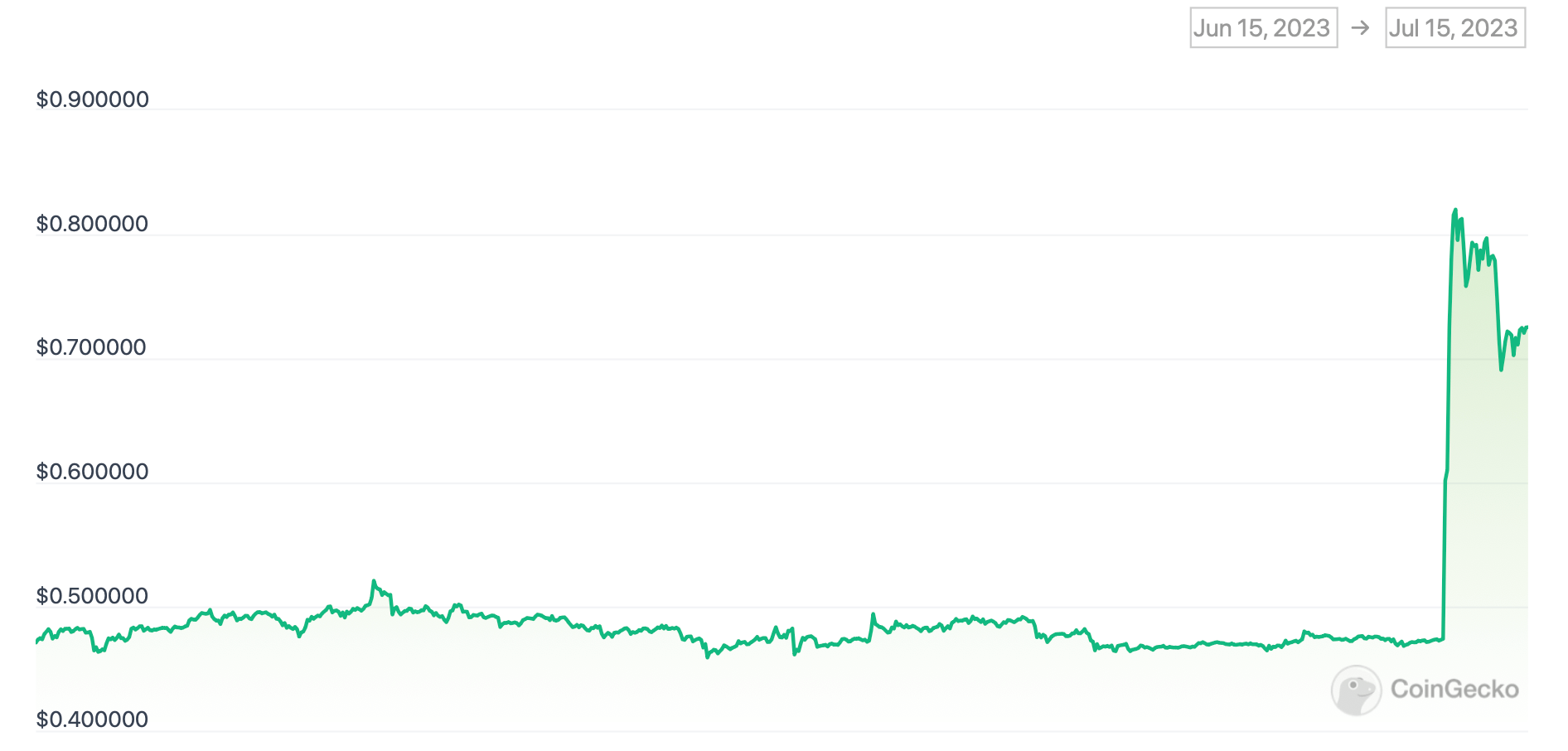 Крипторынок отреагировал на событие заметным ростом цен почти всех активов. Стоимость Биткоина установила новый годовой максимум на уровне 31 804 долларов, а цена XRP вовсе успела прыгнуть в два раза за пару часов на своём локальном пике.