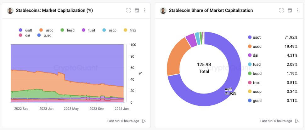 Статистика по доли рынка для разных стейблкоинов