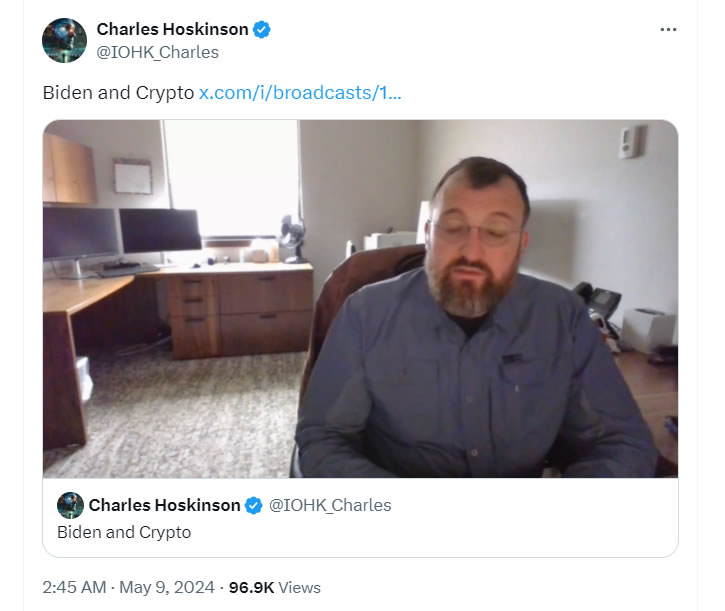 Основатель Cardano Чарльз Хоскинсон раскритиковал президента США Джо Байдена, заявив, что он предпринимает согласованные усилия по уничтожению криптоиндустрии в Соединенных Штатах.