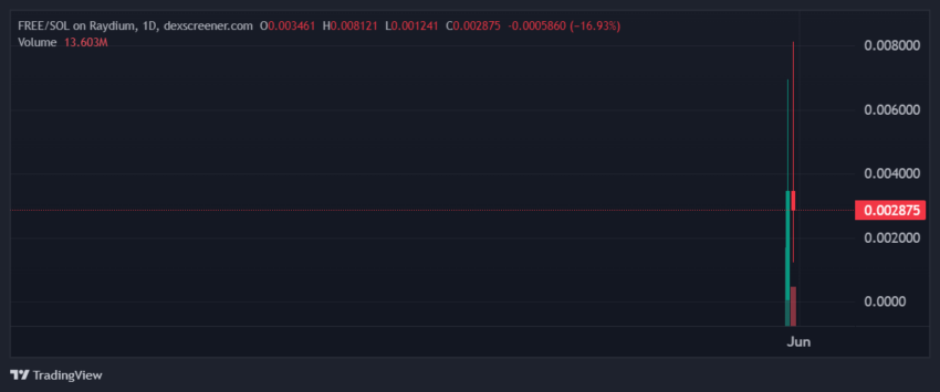 Согласно DEX Screener, курс FREE всего за несколько часов взлетел на 3 272%, а стоимость NEVER SURRENDER — на 2 776%.