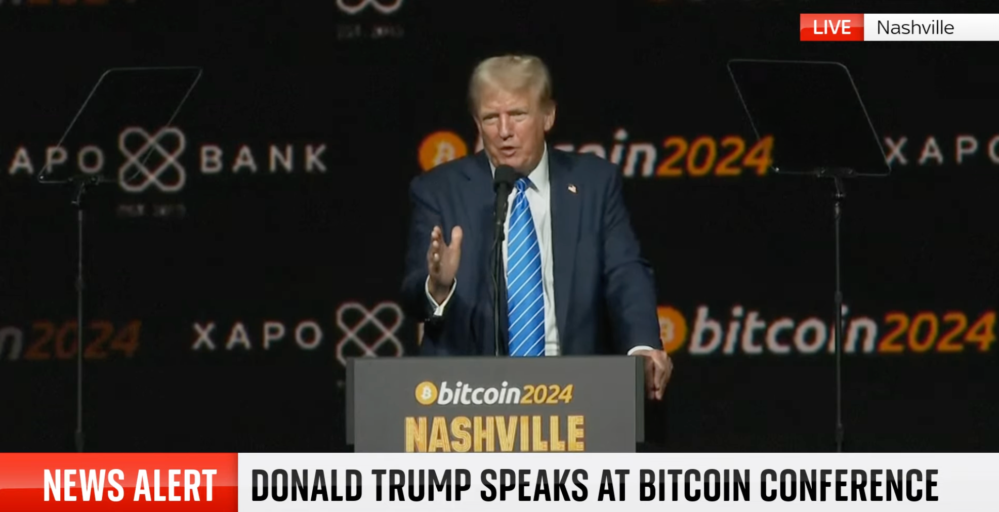 На конференции Bitcoin 2024 в Нэшвилле, штат Теннесси, 27 июля Трамп обратился к толпе биткоинеров, которые ждали более часа, чтобы послушать выступление бывшего президента после того, как он заявил, что Секретной службе нужно дополнительное время на месте проведения.