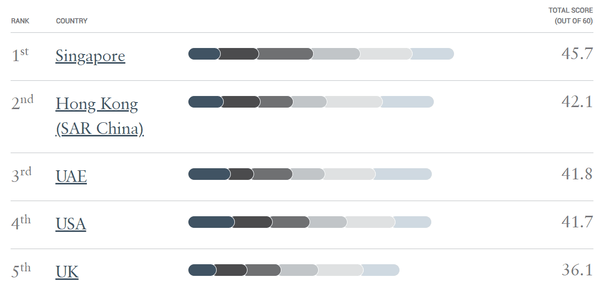 - В первую тройку входят Сингапур, Гонконг и ОАЭ.