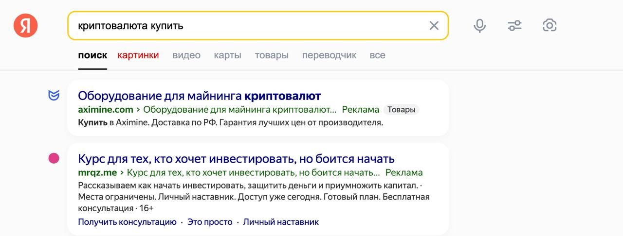 По словам экспертов BitOK, после введения запрета на рекламу крипторынок быстро приспособился к новым условиям. Вместо рекламы прямых криптоуслуг на «Яндексе» можно найти огромное количество обучающих материалов, гайдов и курсов, что соответствует обновленным правилам платформы.