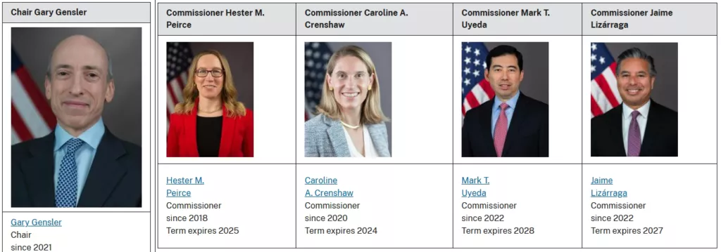 Действующими комиссарами SEC являются назначенные от республиканцев «криптомама» Хестер Пирс и Марк Уеда.
