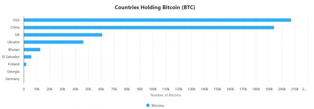 Несмотря на свою антикриптовалютную позицию, Китай занимает второе место по количеству биткоинов (BTC), хранящихся в стране. Согласно трекеру Bitcoin Treasuries компании Bitbo, у Китая есть 194 000 BTC, которые на момент написания статьи стоят около 18 миллиардов долларов. Это делает Китай второй по величине страной по запасам биткоинов.