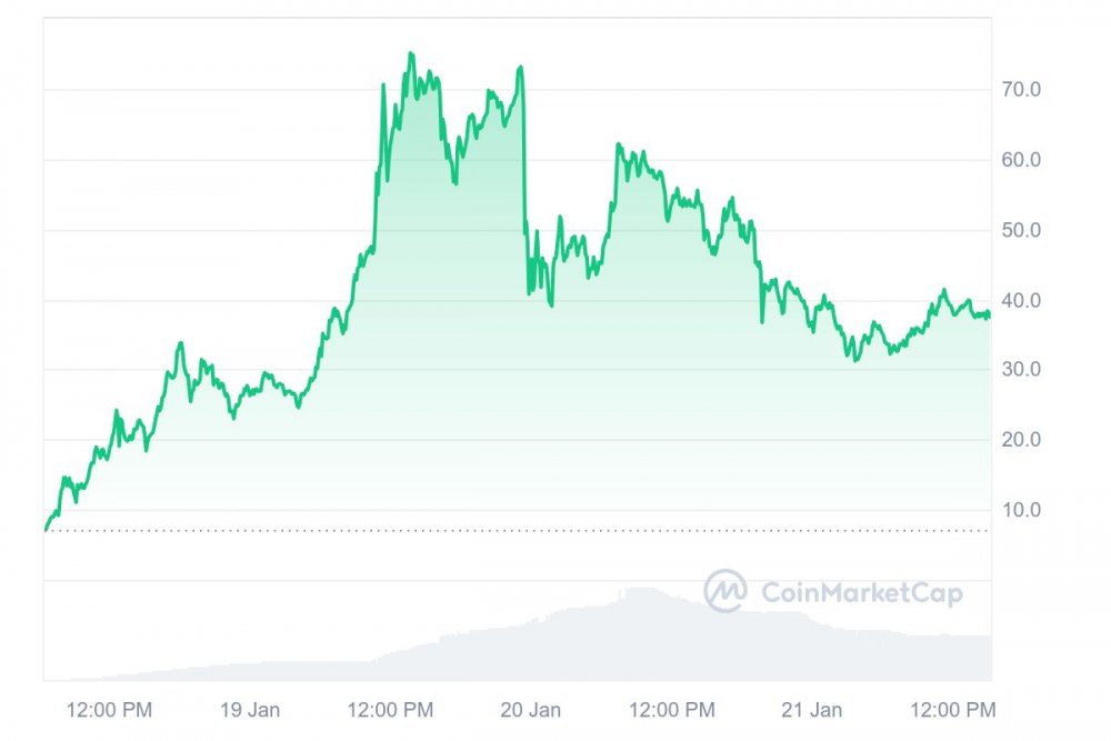 Тем временем токен TRUMP упал более чем на 49% с пикового значения в $75,35, достигнутого 19 января.