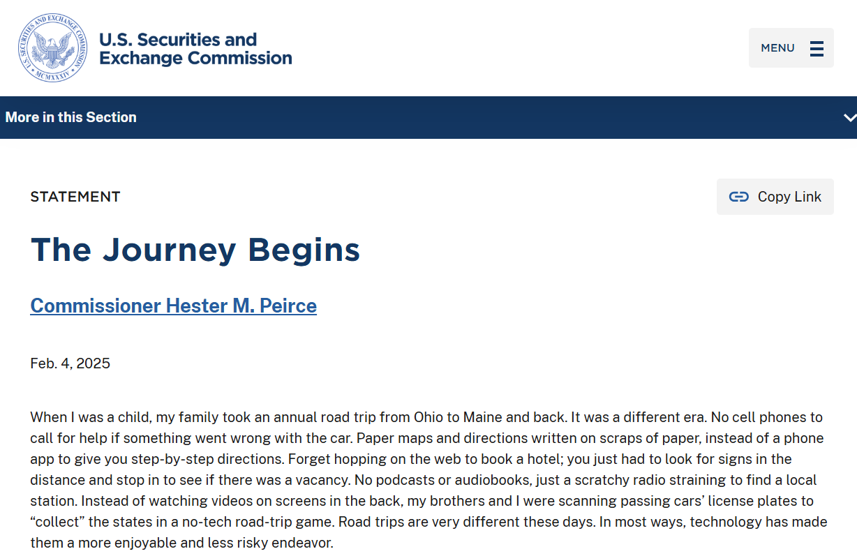Заявление комиссара Пирс о регулировании криптовалют. Источник: SEC
