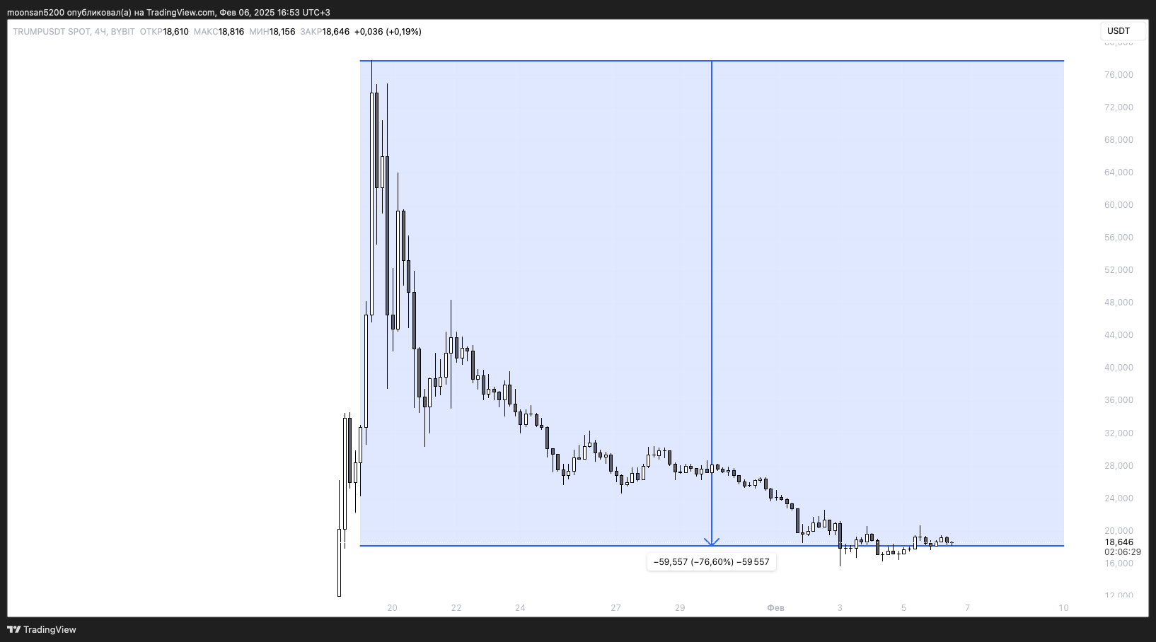 Обвал мем-токена $TRUMP на графике