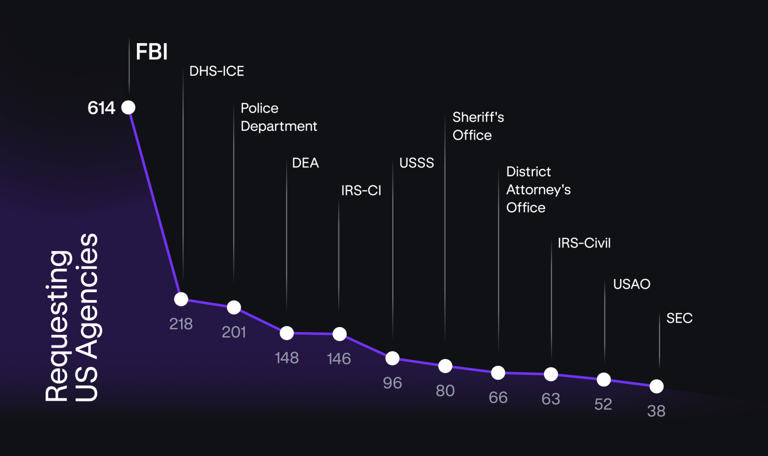 Запросы в американские агентства поступали с федерального, государственного и местного уровней, но большинство из них были получены от правоохранительных органов.