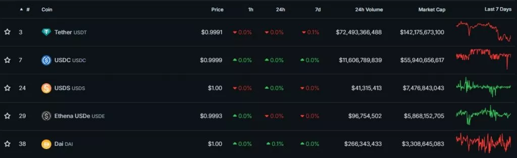 USDC занимает вторую строчку в рейтинге по капитализации в сегменте. С показателем $55,9 млрд актив уступает только USDT с $142,2 млрд.