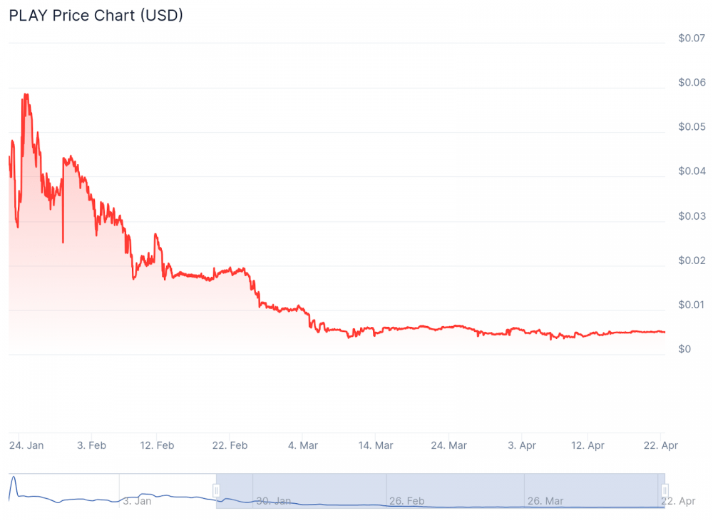 За последние три месяца PLAY упал ниже цента. Источник: CoinGecko