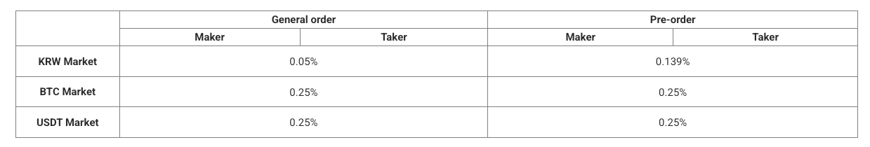 Сборы за сделки на южнокорейской бирже Upbit. Источник: Upbit