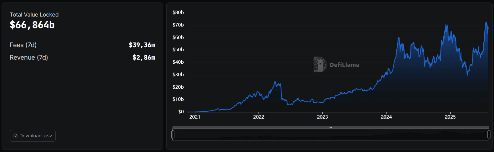 Отметим, согласно DeFiLlama, общий объем заблокированных средств (TVL) в протоколах ликвидного стейкинга в разных сетях составляет почти $67 млрд: