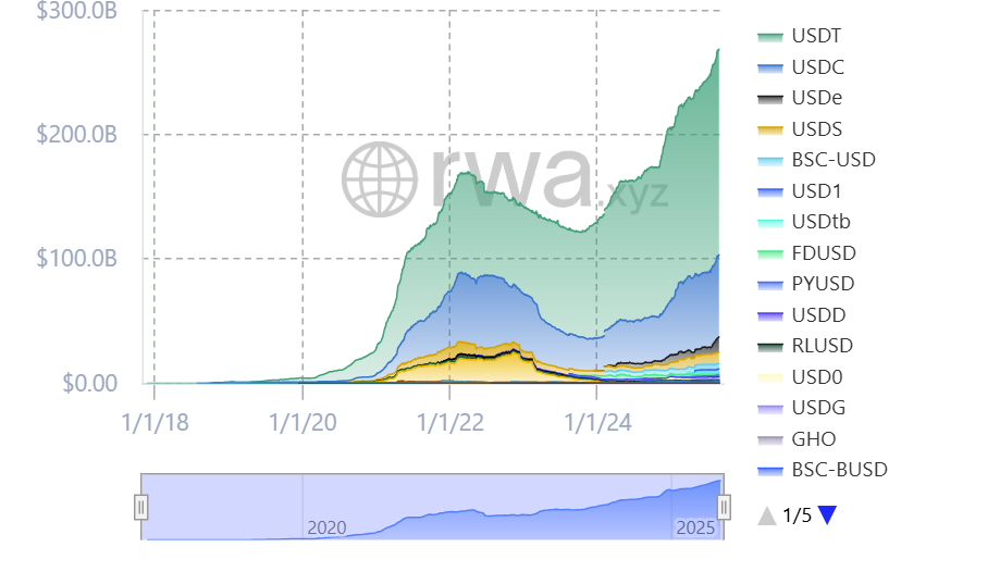 Рыночная капитализация стейблкоинов. Источник: RWA.xyz