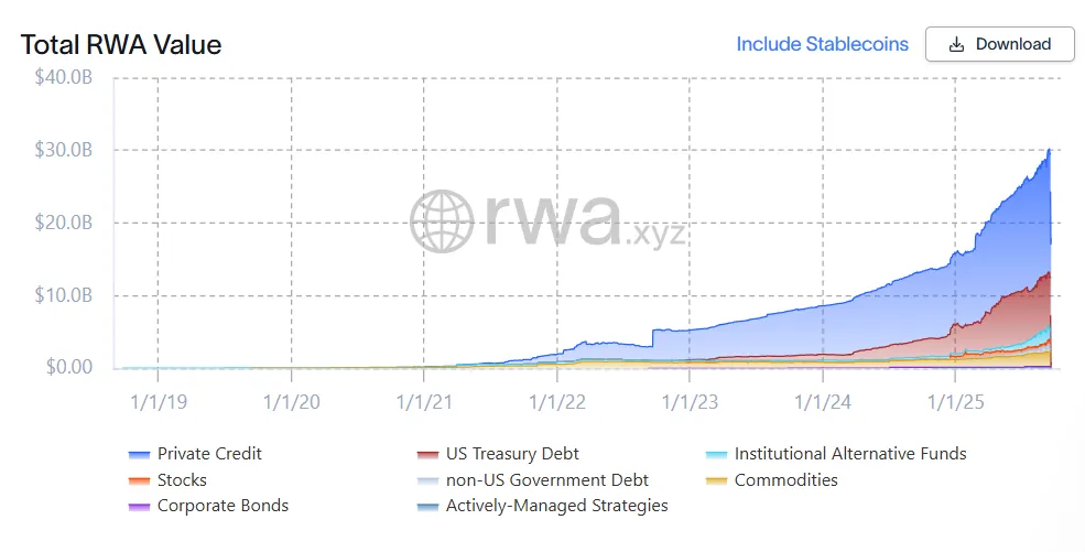 По данным RWA.xyz, мировой рынок токенизированных реальных активов оценивается в $28 млрд.
