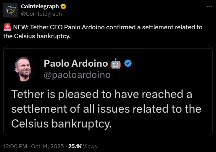 Недавно объявленное урегулирование в размере 299 500 000 долларов США представляет собой лишь малую часть от примерно 4 000 000 долларов США, которые Celsius запросила в суде после искового производства, поданного в августе 2024 года. В июле 2025 года суд по делам о банкротстве одобрил более масштабный иск против Tether, хотя в настоящее время неясно, как это последнее взыскание повлияет на вышеперечисленные разбирательства.
