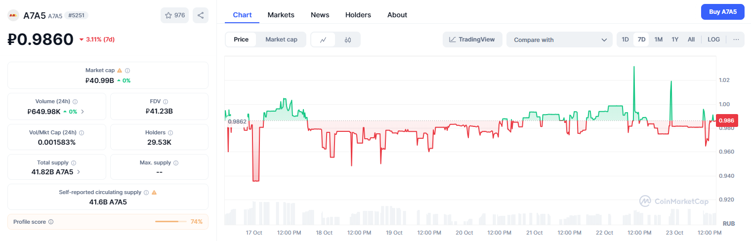 По мнению специалистов, санкционное давление не погубит A7A5. Можно предположить, что принятые ЕС ограничительные меры никак не повлияют на положение рублевого стейблкоина на рынке.