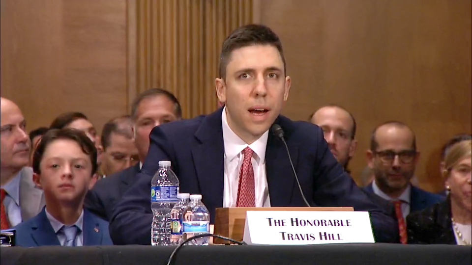 Трэвис Хилл выступает перед Банковским комитетом Сената на слушаниях по выдвижению своей кандидатуры на пост председателя Федеральной корпорации по страхованию вкладов (FDIC). Источник: Senate Banking Committee.