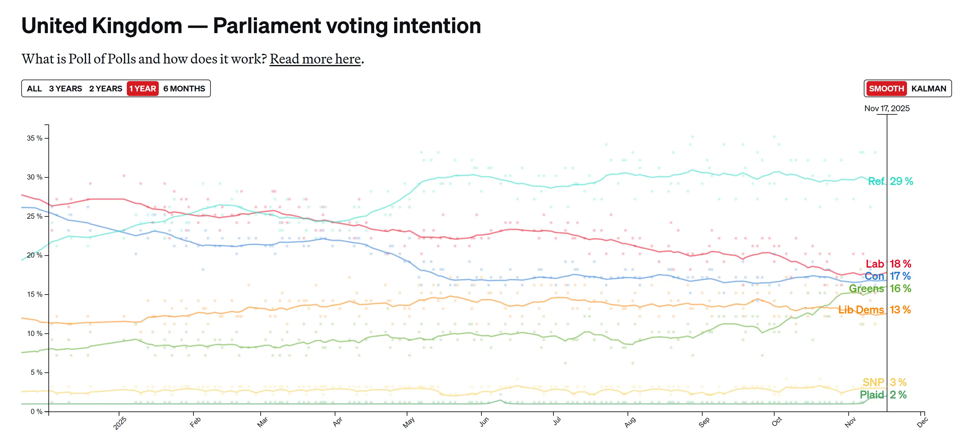 Инициатива появилась на фоне резкого роста популярности Reform UK. Согласно последним общенациональным опросам, партия набирает около 29%, опережая лейбористов (около 18%) и консерваторов (17%). Такая динамика нарушает устоявшуюся двухпартийную систему.