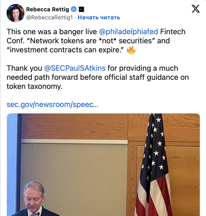 В ноябре 2025 года появились дополнительные подробности стратегии SEC под названием «Project Crypto». Ведомство ввело классификацию токенов, разделяя их на цифровые товары, коллекционные предметы, инструменты и токенизированные ценные бумаги.