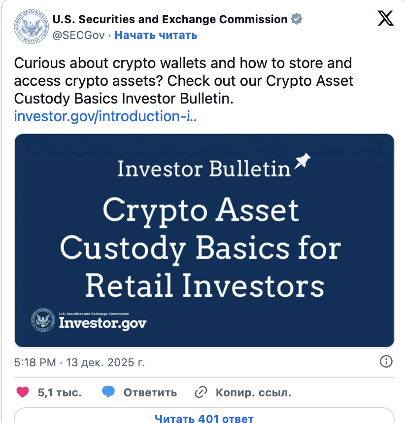 Участники рынка внимательно следят за развитием ситуации. Председатель Комиссии по ценным бумагам и биржам (SEC) Пол Аткинс и отраслевые эксперты подчеркивают, что документ обеспечит беспрецедентный уровень правовой определенности. Советник президента по вопросам ИИ и криптовалют Дэвид Сакс подтвердил прогресс в переговорах с лидерами Конгресса. Он заявил, что принятие закона, к которому призывал президент Трамп, ожидается уже в начале года.