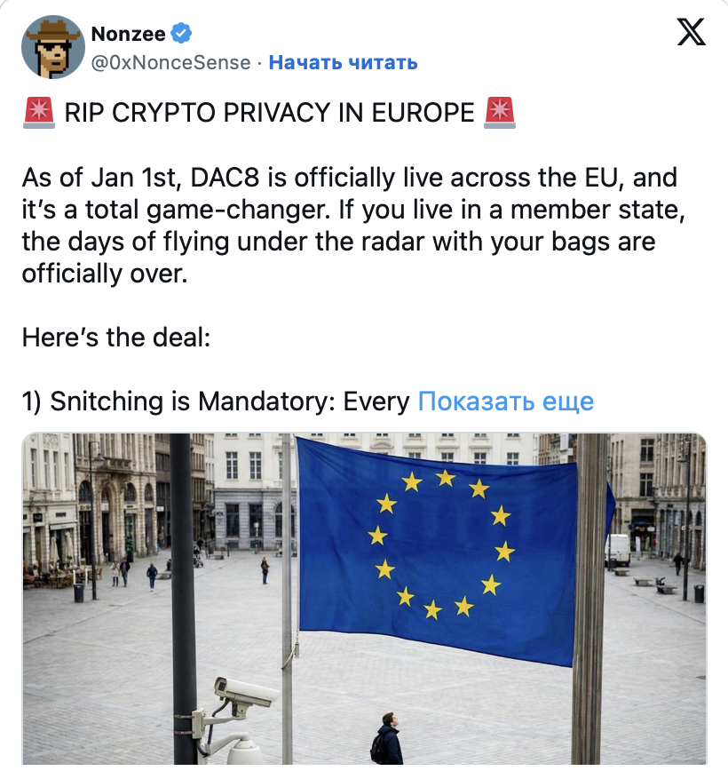 В текущем году 48 государств приступили к внедрению системы Crypto-Asset Reporting Framework (CARF). Одновременно на территории Европейского союза начала действовать директива DAC8.