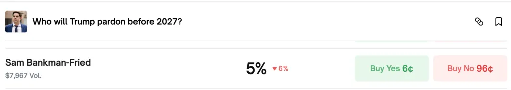 Несмотря на то, что Трамп освободил основателя Silk Road Росса Ульбрихта и экс-главу Binance Чанпэна Чжао, в случае с Бэнкманом-Фридом рынок настроен скептично. Вероятность его выхода из тюрьмы до 2027 года оценивается сообществом всего в 5%.