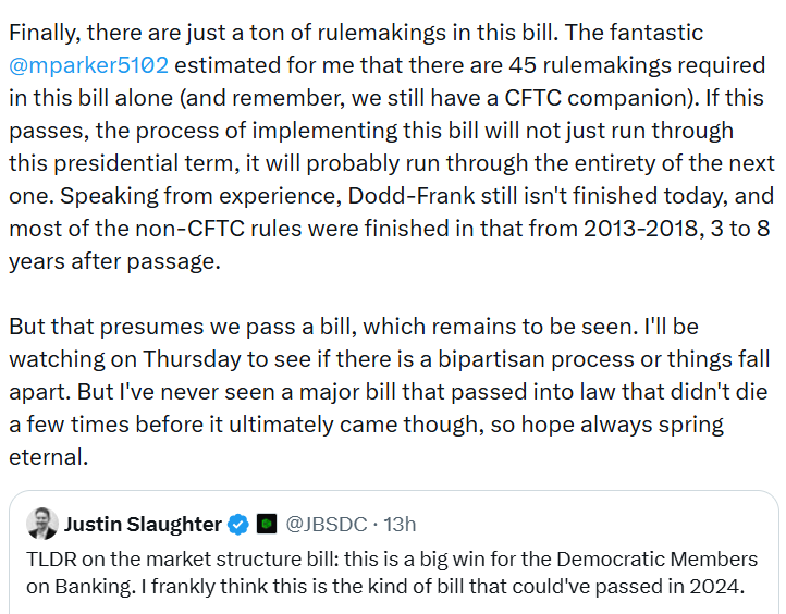 CLARITY Act еще предстоит принять, при этом процесс может затянуться уже на этой стадии, отметил Слотер.