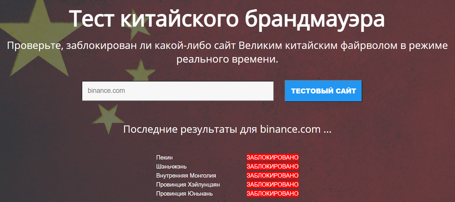 Вчера пользователи Binance (binance.com) в Китае были оповещены, что теперь сайт поставлен наряду с «неблагонадежными» Инстаграм и Фейсбуком в ряд сайтов, которым доступ в стране закрыт.
