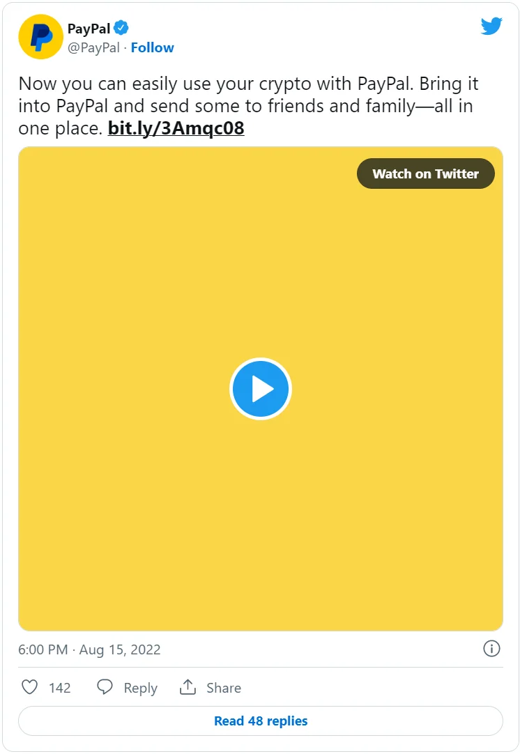 Что произошло? Представители PayPal сообщили о полноценной интеграции криптовалют в мобильное приложение платежной системы. Теперь для покупки, продажи, хранения и передачи пользователям приложения доступны биткоин (BTC), Bitcoin Cash (BCH), Ethereum (ETH) и Litecoin (LTC). Об этом говорится в официальном аккаунте PayPal в Twitter.
