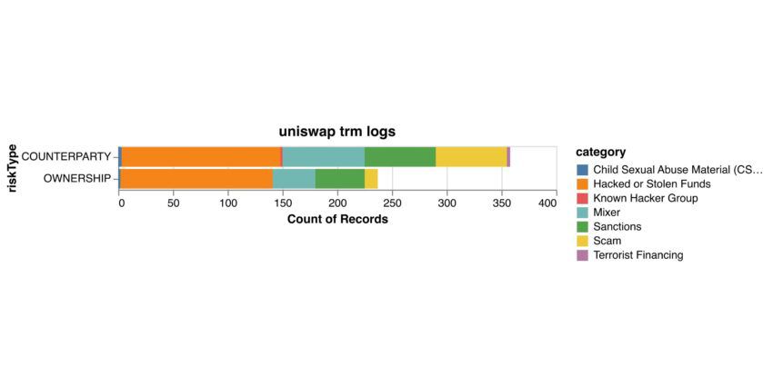 Согласно заметкам, Uniswap вносит в бан адреса, которые относятся к одной из семи категорий: санкции, хищение криптовалют, мошенничество, надругательство над детьми, связь с хакерами, миксеры и финансирование терроризма. Больше всего под блокировку попали адреса, связанные с хищением криптовалют.