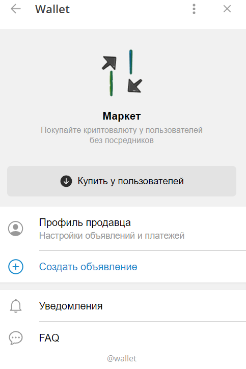 Wallet позволяет не только приобрести, но и продать имеющуюся криптовалюту (TON и BTC). Для этого необходимо настроить профиль продавца и создать объявление о продаже, указав в нем все необходимые параметры сделки: количество продаваемой цифровой валюты, цена продажи и способ оплаты.