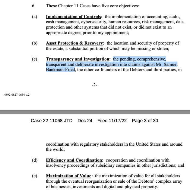 Это ещё не всё. Как отмечено в документах, по деятельности основателя FTX Сэма Банкмана-Фрида будет проведено расследование.