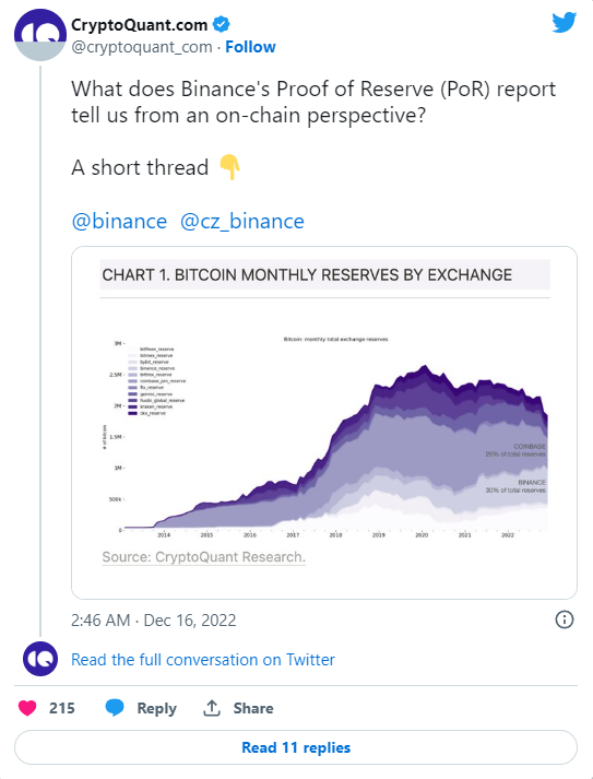 После падения FTX биржи были вынуждены публиковать свои Proof-of-Reserves (PoR). Binance опубликовала PoR ранее в этом месяце, но была встречена критикой. Аудитор не представил своего профессионального суждения или заключения, обеспечивающего уверенность, и они не сделали никаких заявлений о «согласованной процедуре».