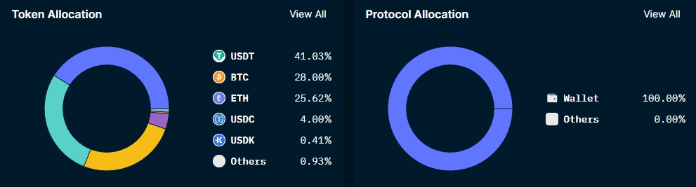 По данным дашборда Nansen, на BTC, ETH и USDT суммарно приходится почти 95% стоимости всех средств на платформе. Доминирует стейблкоин от Tether с долей 41%, еще 4% занимает «стабильная монета» USDC консорциума Centre.