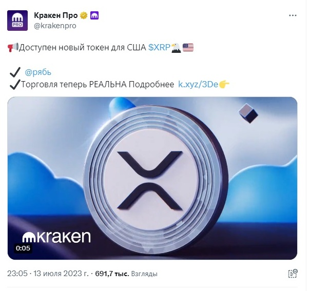 13 июля 2023 года, в течение 30 минут после того, как Coinbase объявила о своем решении провести повторный листинг $XRP, конкурирующая биржа Kraken сделала аналогичное заявление: