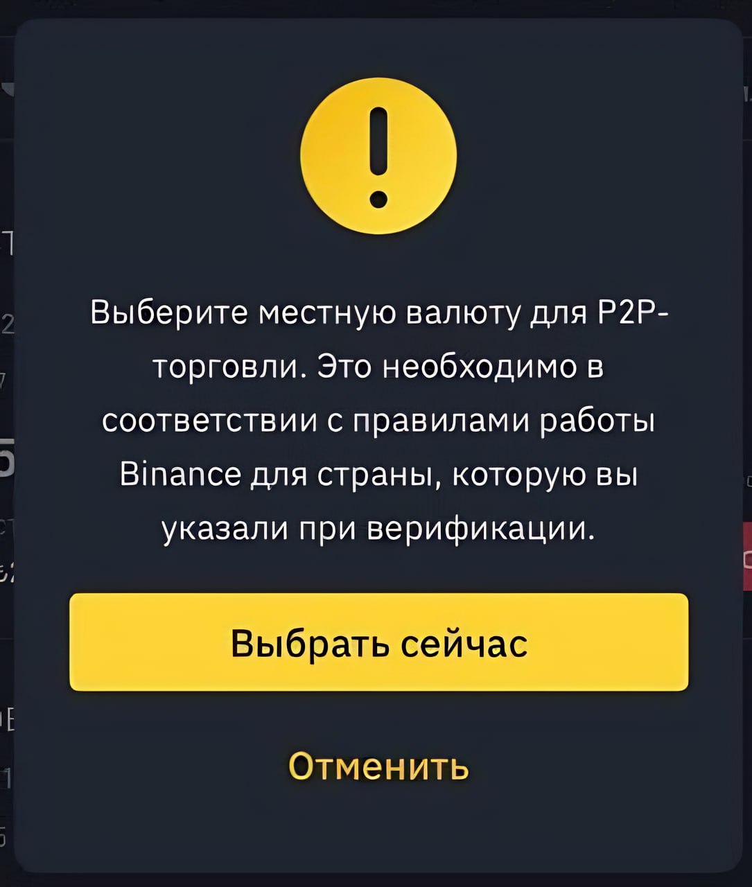 При попытке купить любую другую валюту, кроме российского рубля, появляется сообщение: «Выберите местную валюту для P2P-торговли. Это необходимо в соответствии с правилами работы Binance для страны, которую вы указали при верификации». Обойти ограничение нельзя.