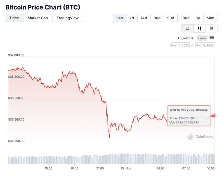 Вчера вечером цена биткоина резко снизилась более чем на 5% и протестировала отметку $35 000.