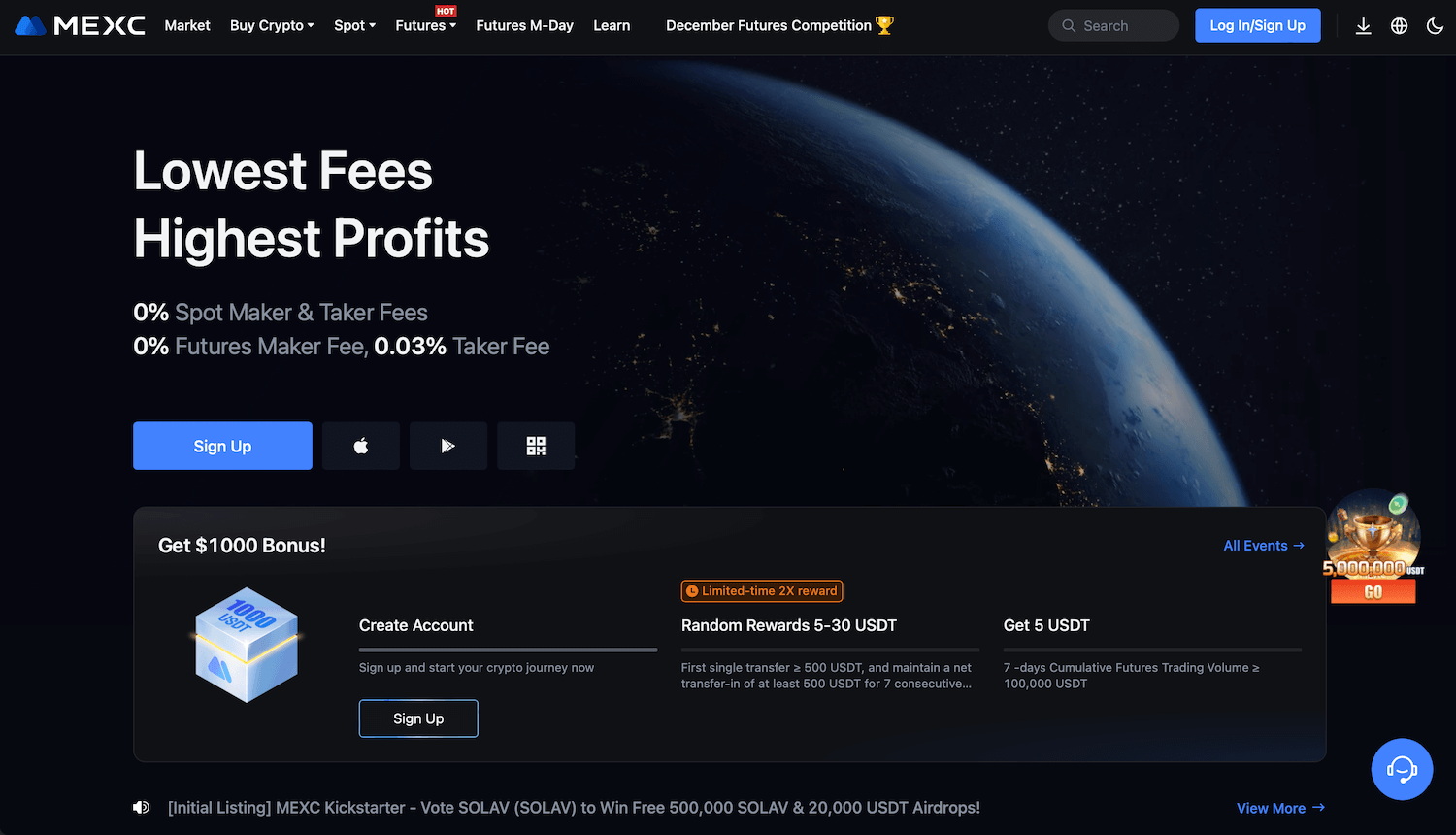 Главная страница криптовалютной биржи MEXC
